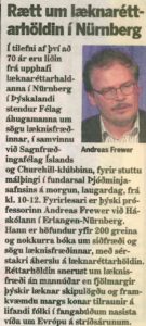 Andreas Frewer, M.A. (FAU) im Nationalmuseum von Reykjavik die englische Keynote Lecture bei der Jahresveranstaltung gehalten. Zu historischen und moralischen Fragen des Nürnberger Tribunals entwickelte sich mit Ärzten, Pflegenden und Öffentlichkeit eine intensive Debatte. Die 120 Plätze des Festsaals reichten nicht aus, zahlreiche weitere Stühle mussten aufgestellt werden. Neben Pressemeldungen und Radiointerviews erschien in der Zeitung „Morgunbladid“ (Reykjavik) ein Bildbericht.